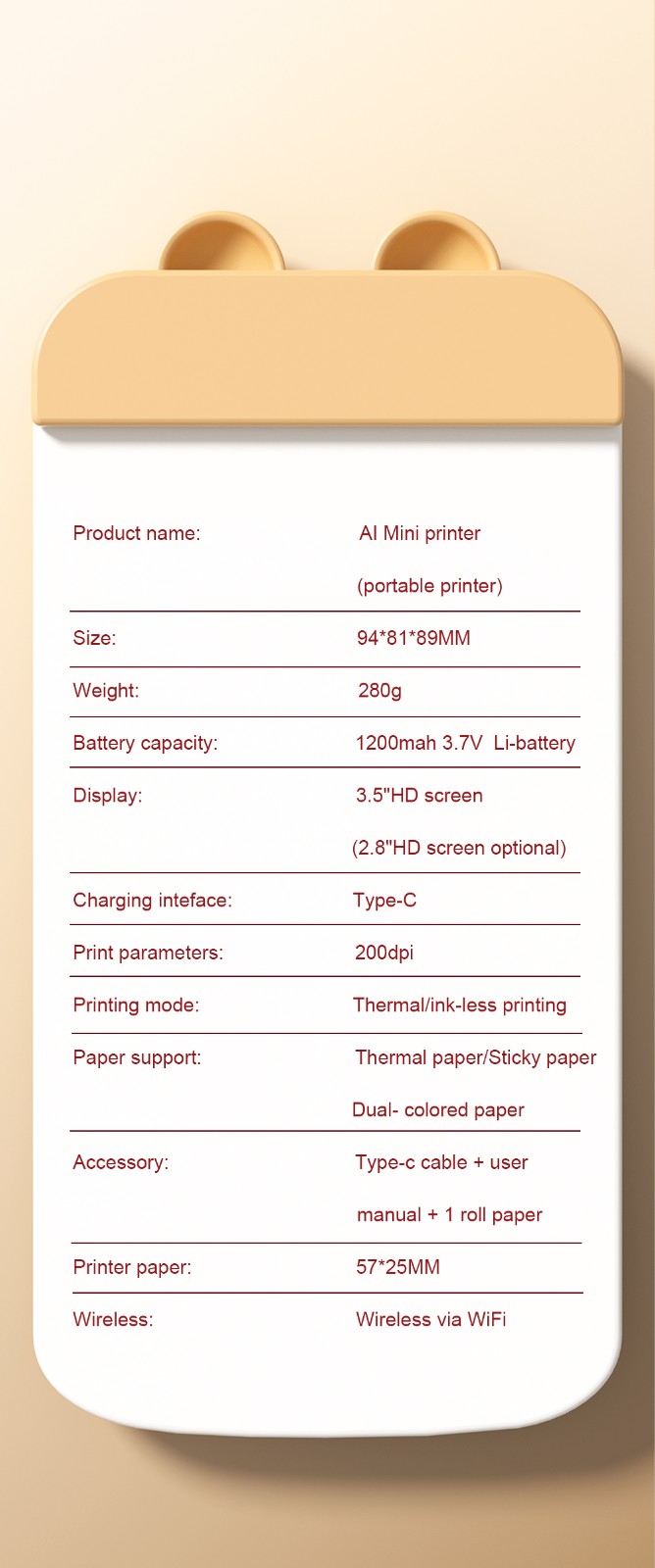Ai mini printer X15 with a screen: can print instantly according to your voice command