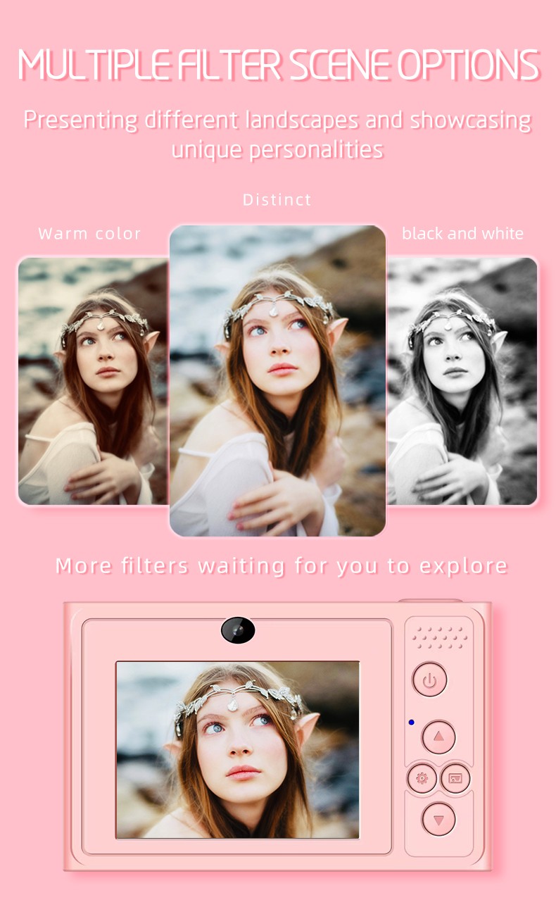 twin lens,VGA30W,2.4Inches,IPS,5 types of filters, 10 types of special effects, 9 photo frames, 12 types of collage frames, 9 video frames.