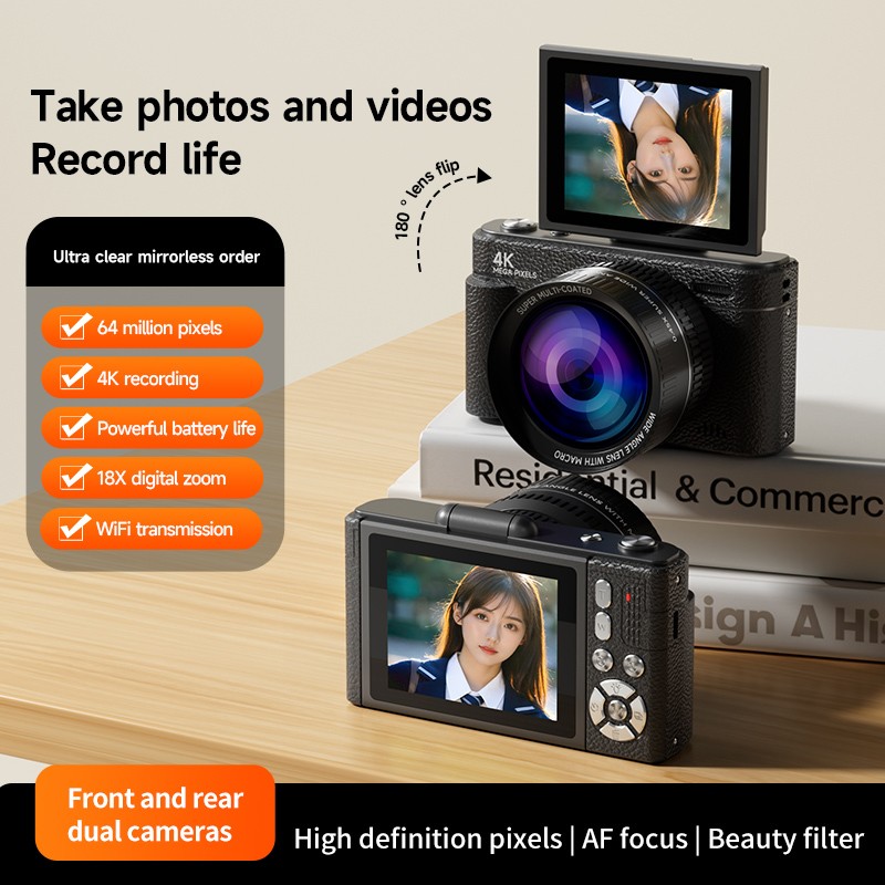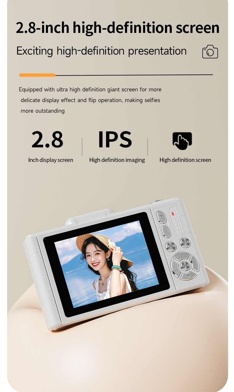 Standard video recording, loop recording, AF automatic focusing, 180-degree flip screen, 120 million pixels, 2.8-inch TFT color display (640*480), standard photography, timed photography, continuous photography