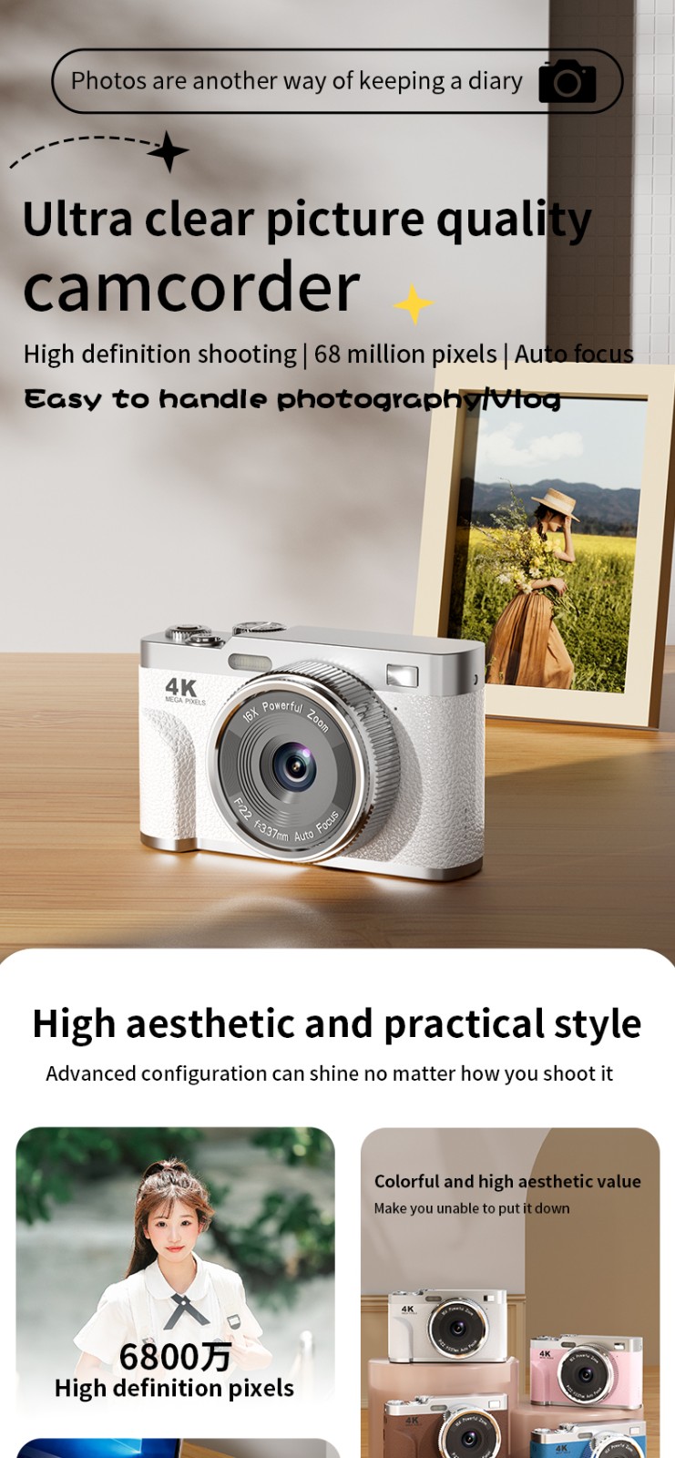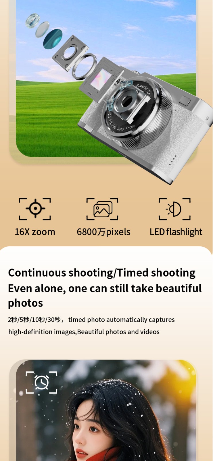 AF automatic focusing, high single-shot shooting, with flash, 5 million pixels, frame rate 30 FPS,2.8Inches,IPS,Single-lens ,130W