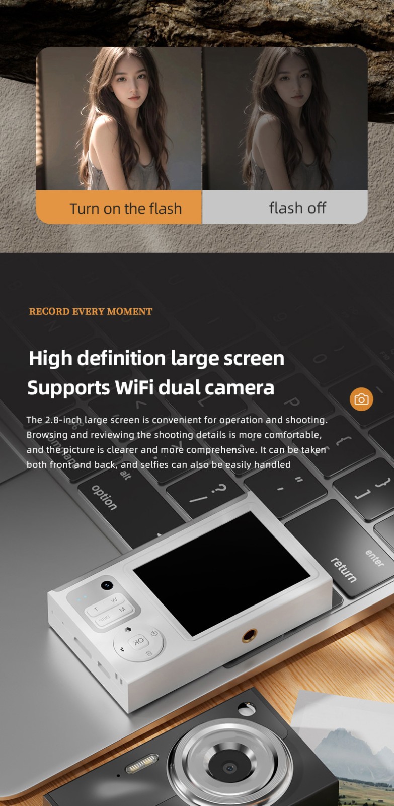 AF automatic focusing, equipped with WIFI, with a flash, high-definition dual camera, 2 million pixels,2.8Inches,IPS,,twin lens,200W