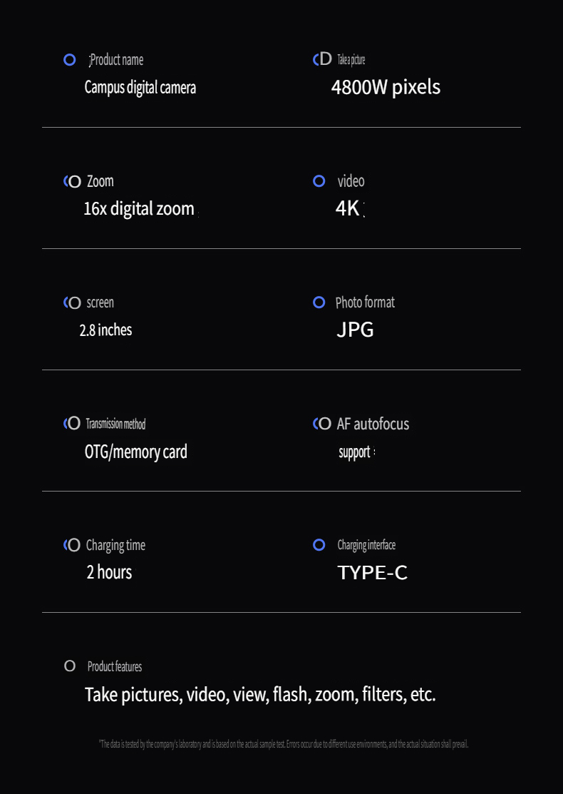 2.8Inches,HD,AF automatic focusing, high-resolution shooting, with flash, 1 million pixels