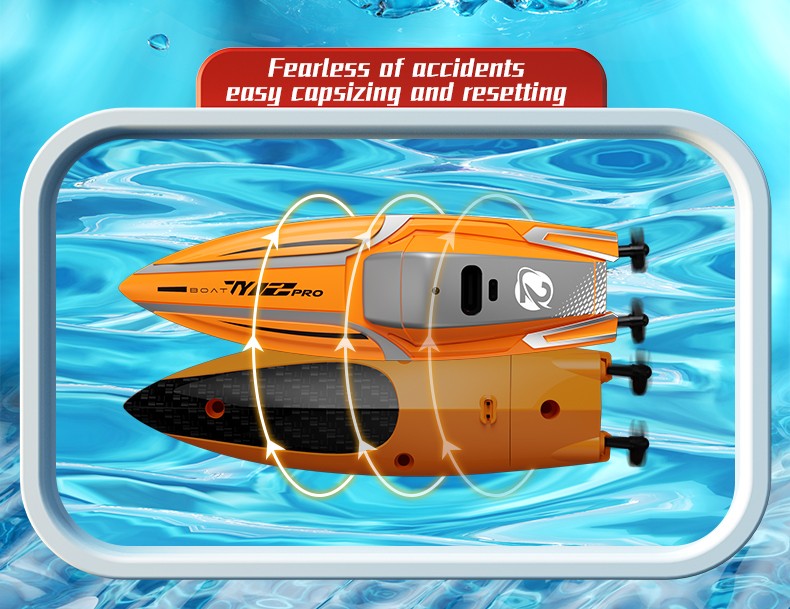 2.4G Mini Remote Control Boat with Electric Long-Range Power, Special Tricks, Rolling and Rotating Functions, Dual Motors, Waterproof, Fast Boat, Water Toy YTY11