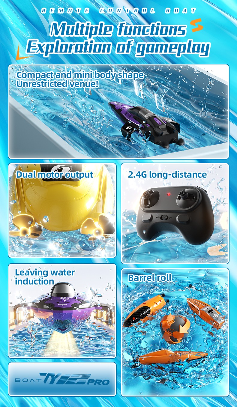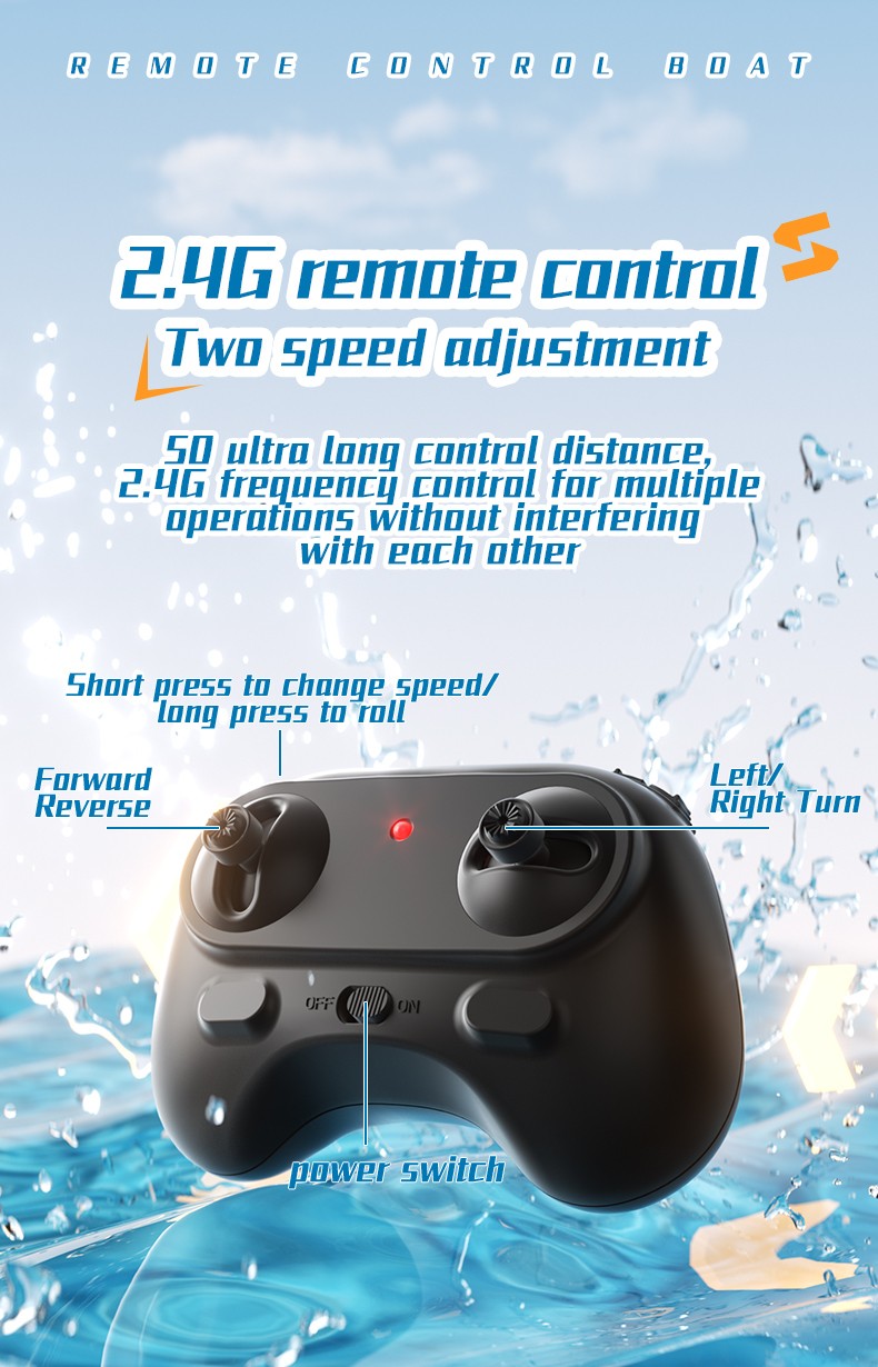 Remote control boat toy - 2.4G rechargeable electric stunt rolling and rotating dual-motor long-range toy boat speedboat YTY13