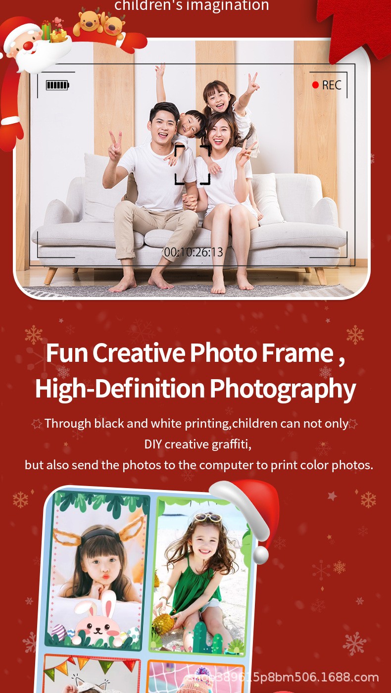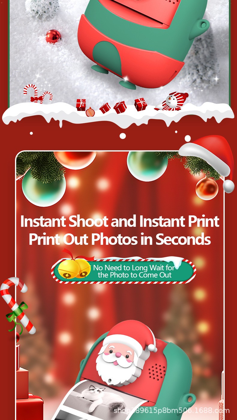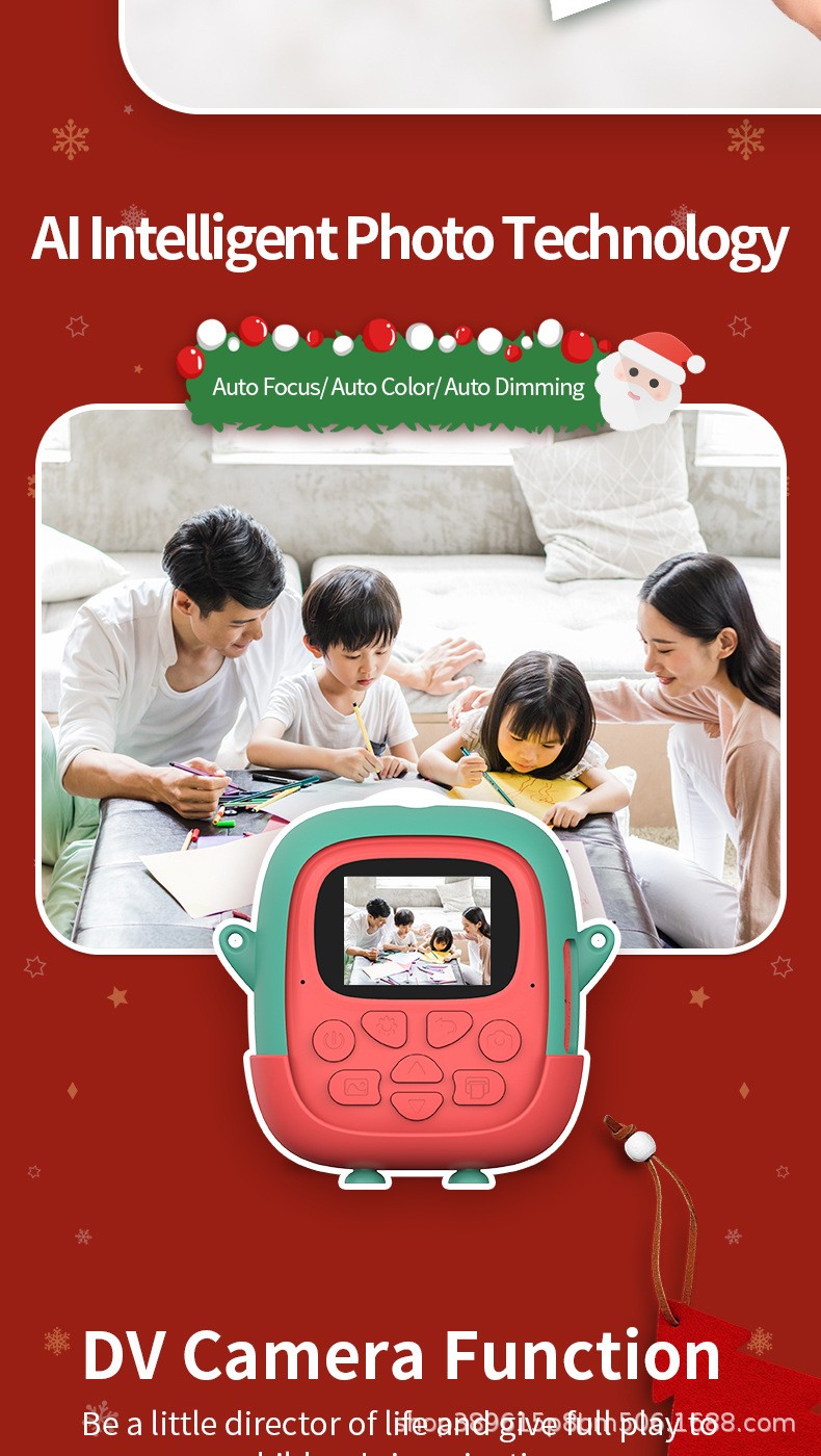 New style Polaroid children's digital camera, cute cartoon mini photo-taking and printing digital high-definition printing camera, Christmas gift, children's Polaroid camera, cartoon mini DSLR with dual lenses, children's digital camera gift YA19B