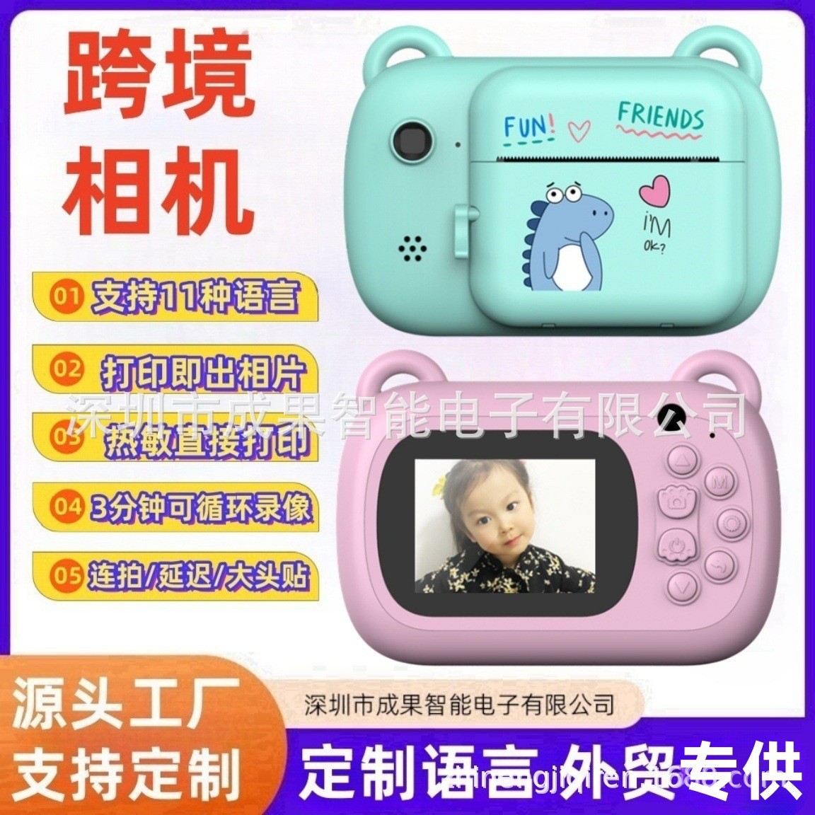 New model children's digital high-definition photo-taking and printing camera, cartoon mini Polaroid children's digital camera YA7B