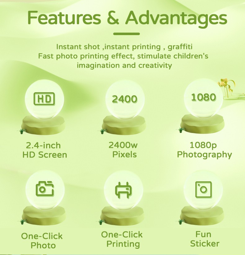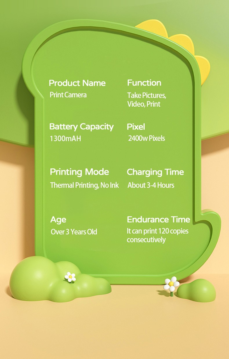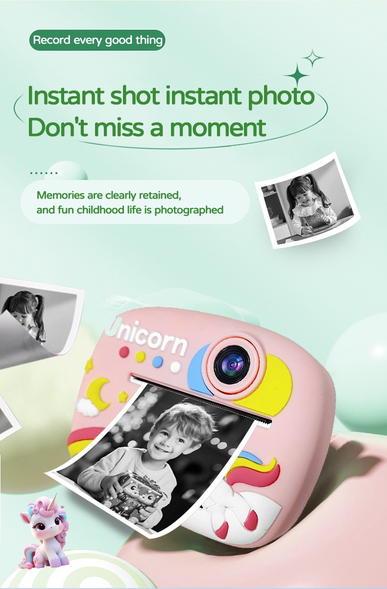 New style Polaroid children's digital camera, cute cartoon mini photo-taking and printing digital high-definition printing camera, printing cartoon mini toy gift YD1B