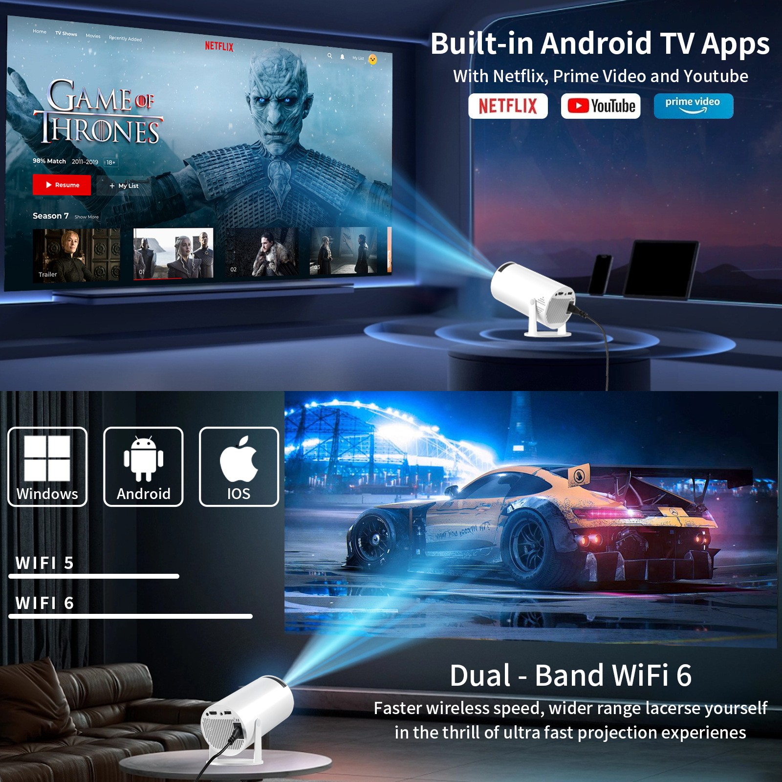 HY300 Portable Mini Outdoor Projector, Cannon-shaped, High Definition, Mini Projector