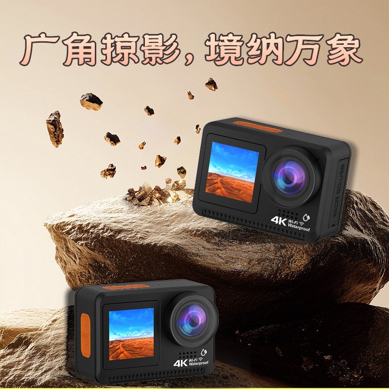 New 4K sports camera with built-in stabilization, dual screens, car-mounted recorder, Wi-Fi, outdoor shooting, cycling, fishing, camera, DV, fully waterproof YB01