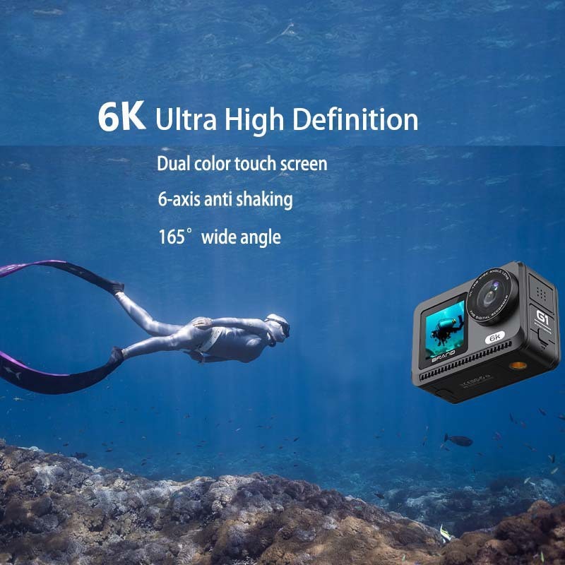 New 6K sports camera with built-in stabilization, dual screens, car-mounted recorder, Wi-Fi, outdoor shooting, cycling, fishing, camera, DV,Anti-shaking