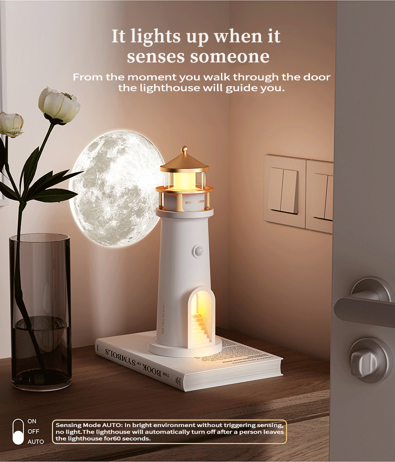 Moonlight Lighthouse Projection Moon Atmosphere Night Light Healing Series Birthday Gift Headboard Lamp Desktop Bluetooth Speaker YMG-008