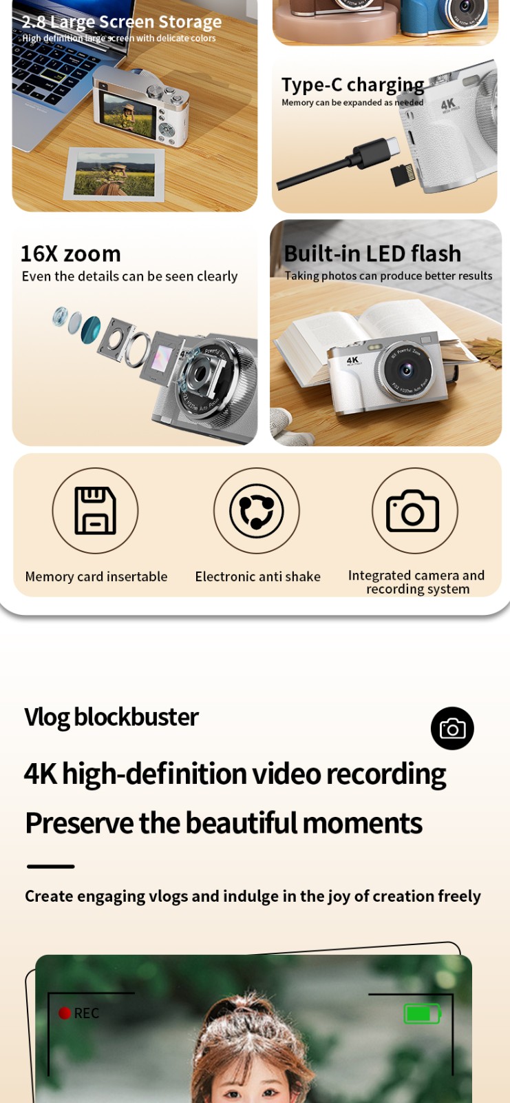 AF automatic focusing, high single-shot shooting, with flash, 5 million pixels, frame rate 30 FPS,2.8Inches,IPS,Single-lens ,130W