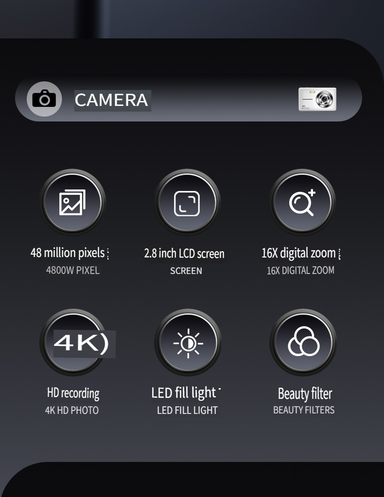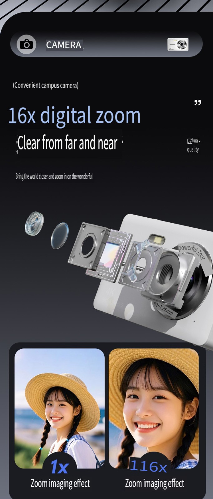 2.8Inches,HD,AF automatic focusing, high-resolution shooting, with flash, 1 million pixels