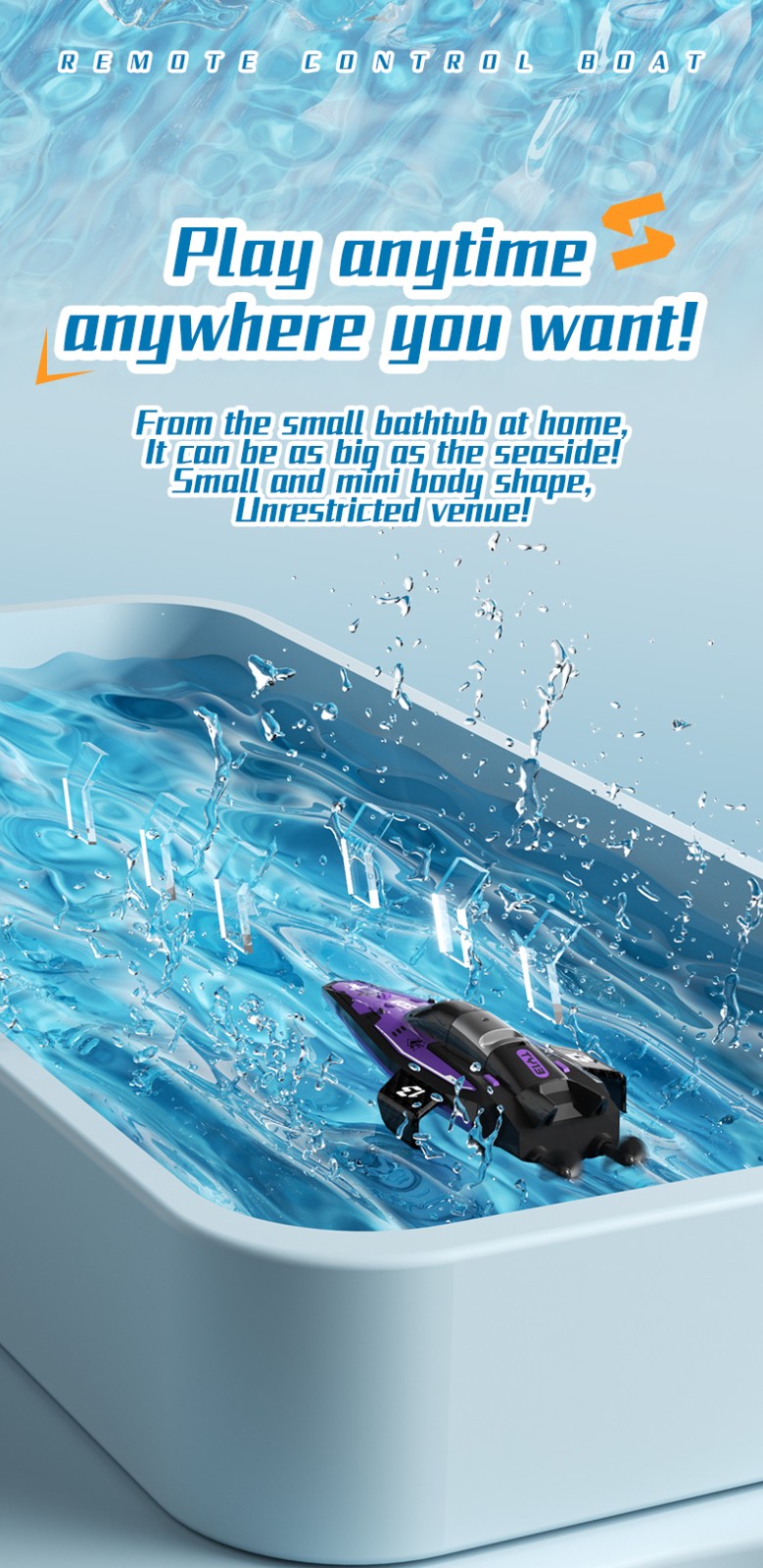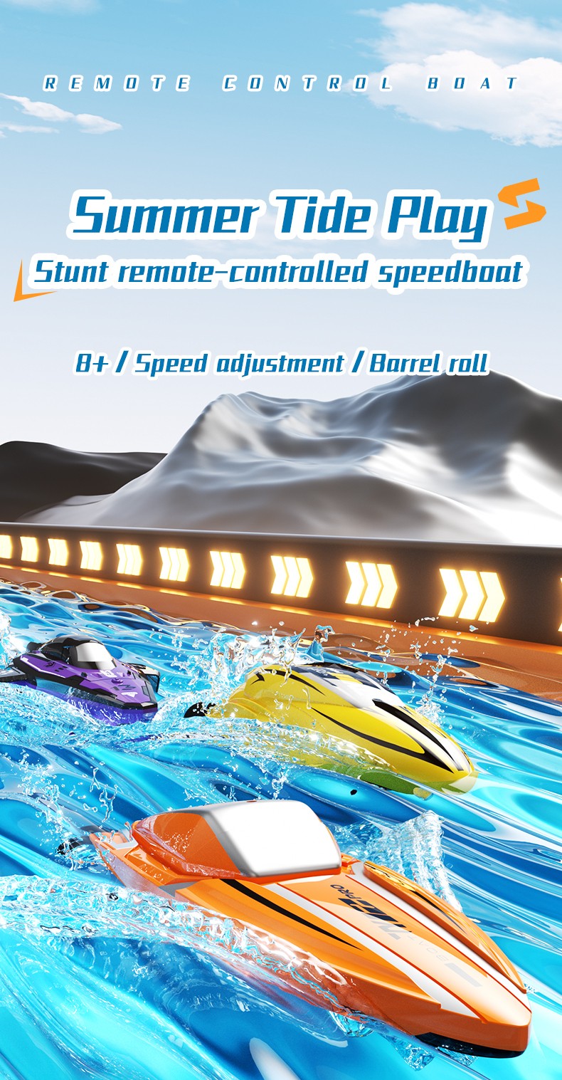 2.4G Mini Remote Control Boat with Electric Long-Range Power, Special Tricks, Rolling and Rotating Functions, Dual Motors, Waterproof, Fast Boat, Water Toy YTY11