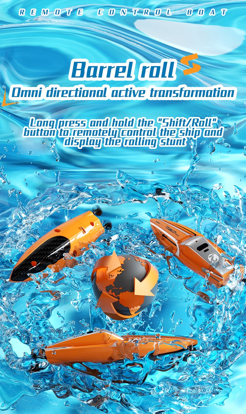 Remote control boat toy - 2.4G rechargeable electric stunt rolling and rotating dual-motor long-range toy boat speedboat YTY13