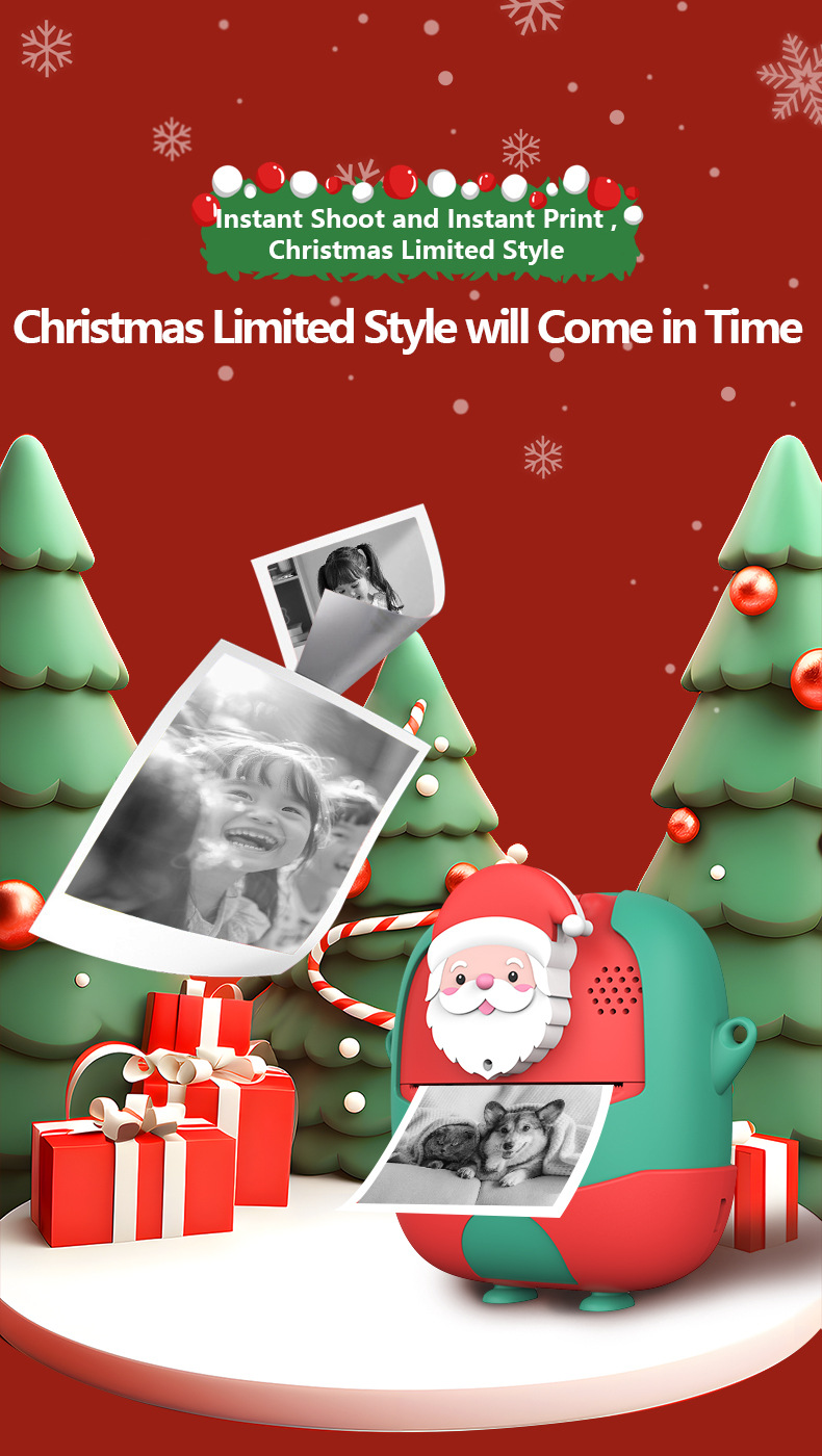 New style Polaroid children's digital camera, cute cartoon mini photo-taking and printing digital high-definition printing camera, Christmas gift, children's Polaroid camera, cartoon mini DSLR with dual lenses, children's digital camera gift YA19B
