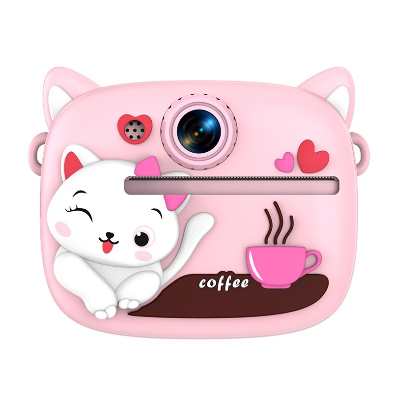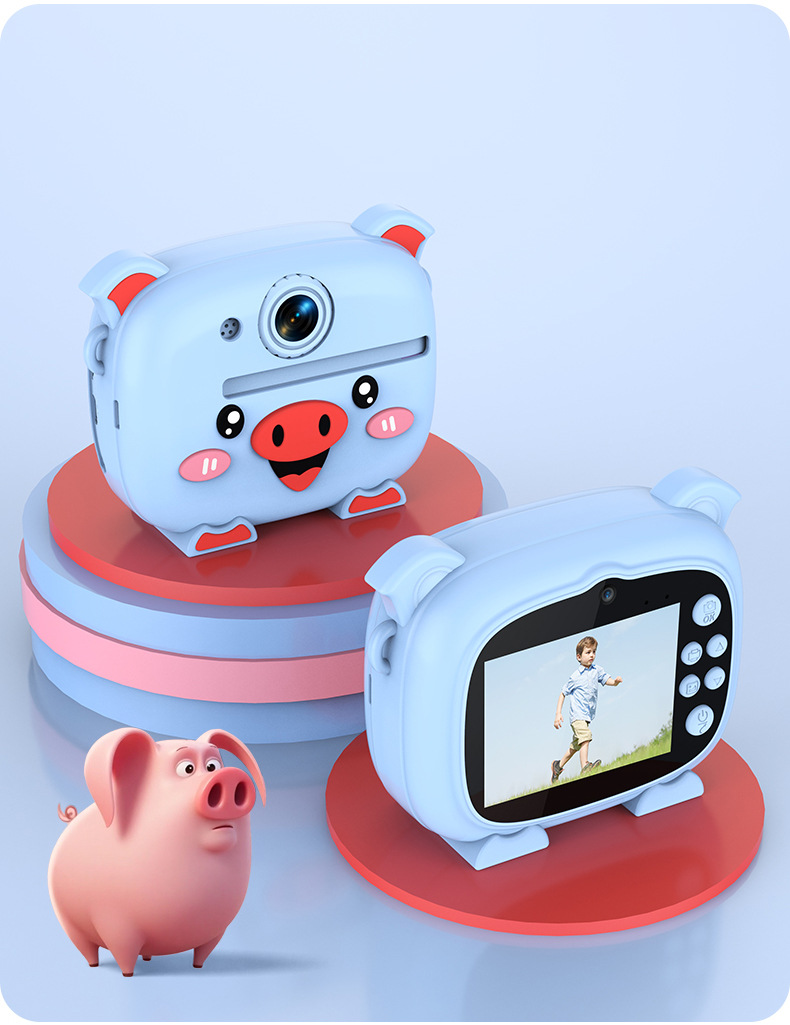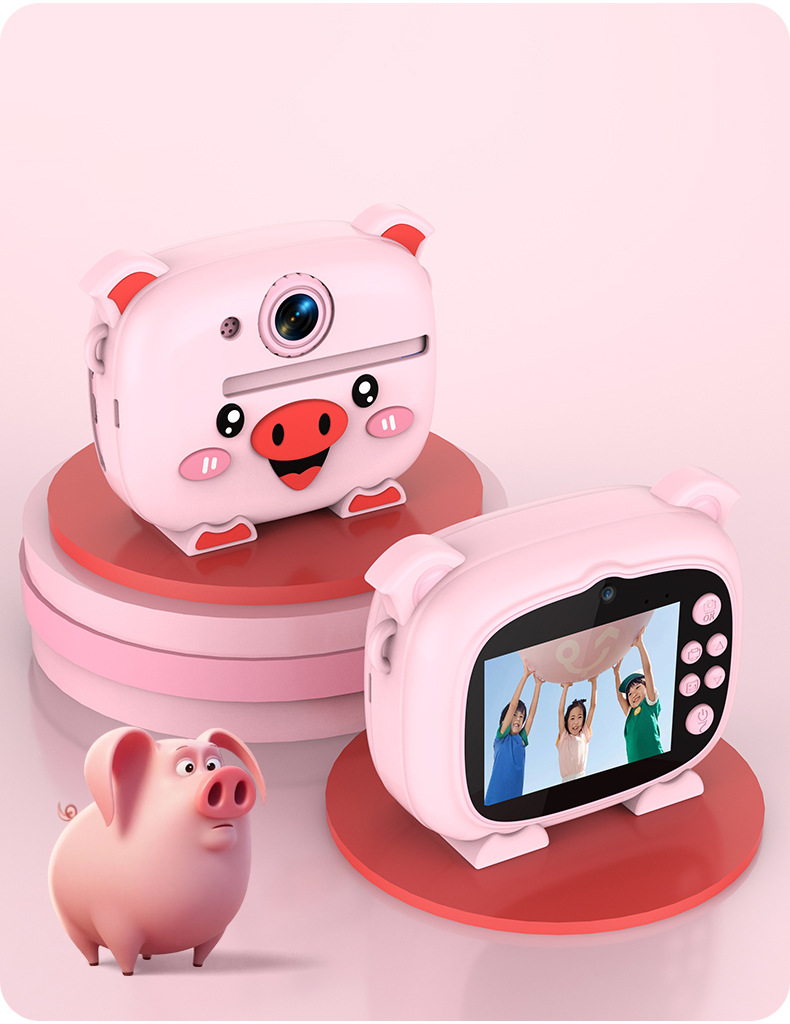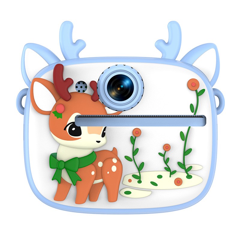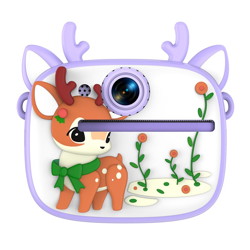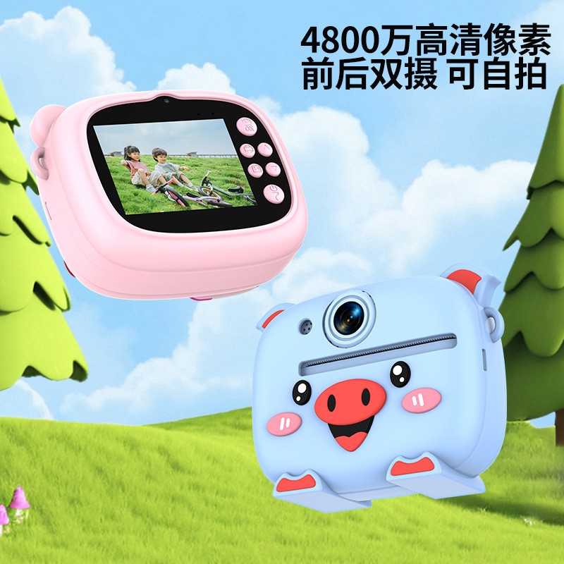 New model children's instant camera can take photos. It comes with a silicone protective cover and can print high-definition pictures. It has dual cameras for taking frontal and rear shots and is capable of recording videos. It is a children's camera YS2
