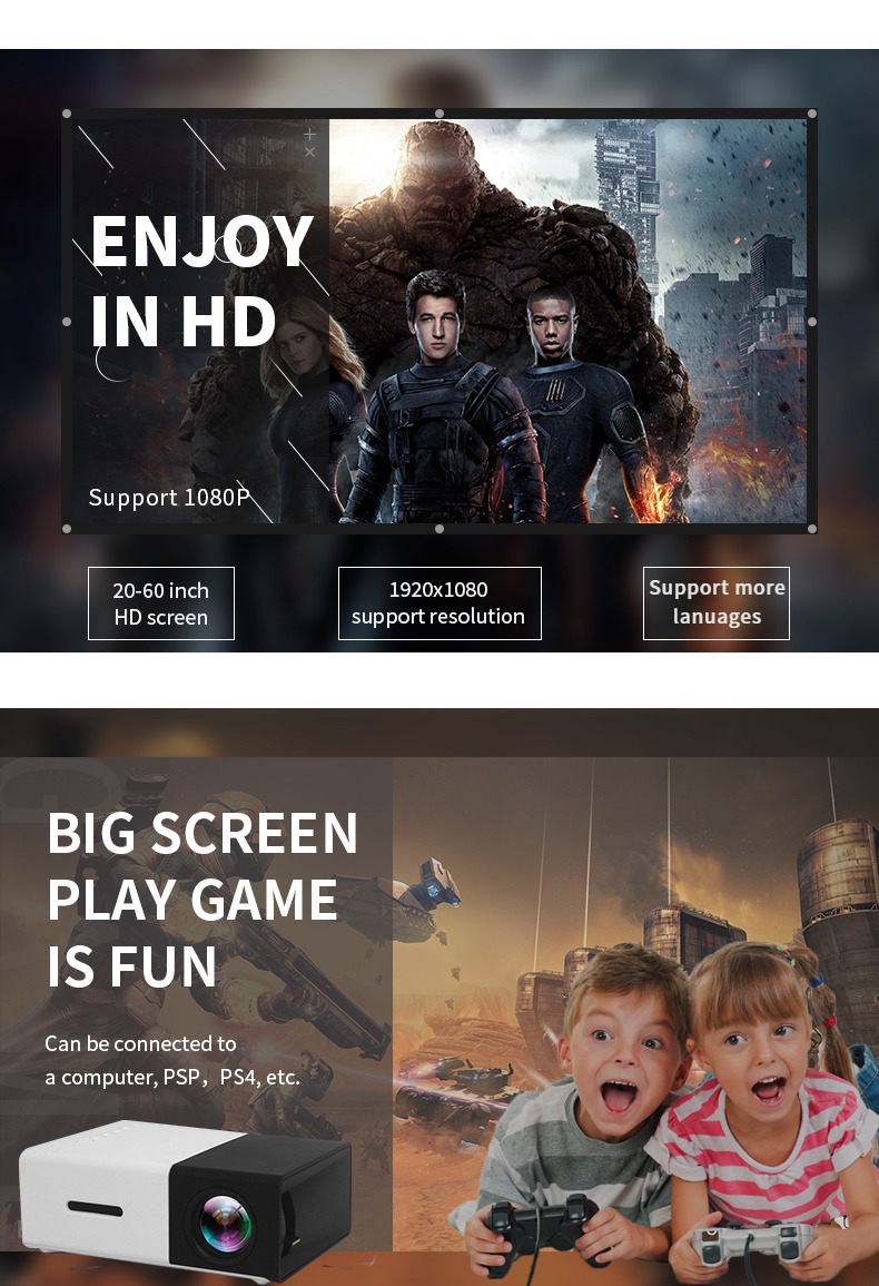 YG300 Projector, Home Use Mini Projector for Kids, Portable Wall Projector for Bedroom, Supports 4K Ultra HD