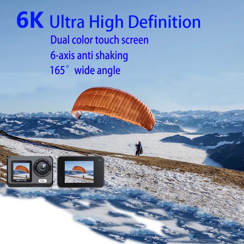 New 6K sports camera with built-in stabilization, dual screens, car-mounted recorder, Wi-Fi, outdoor shooting, cycling, fishing, camera, DV,Anti-shaking