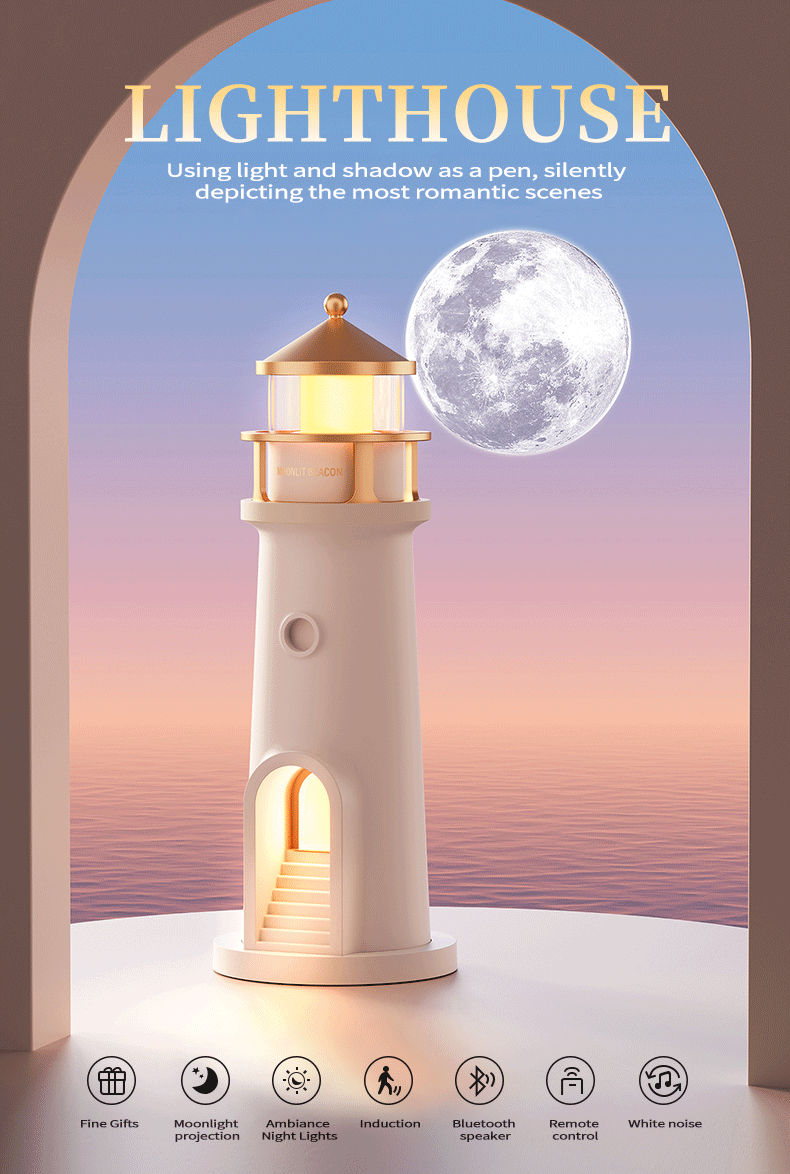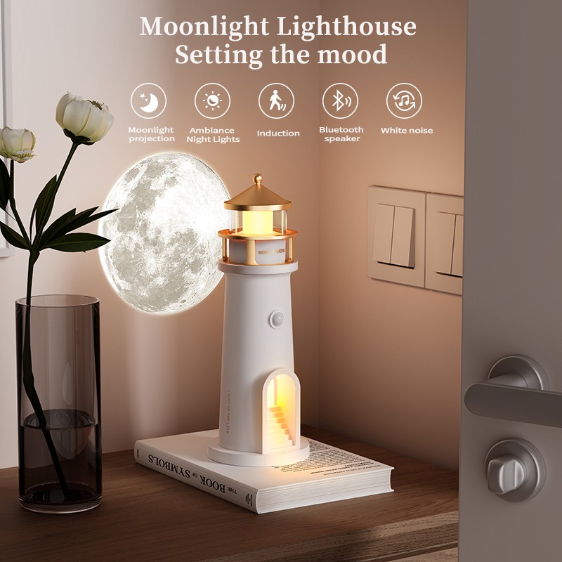 Moonlight Lighthouse Projection Moon Atmosphere Night Light Healing Series Birthday Gift Headboard Lamp Desktop Bluetooth Speaker YMG-008