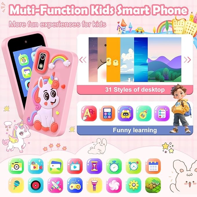 Kids Mobile Phone Toy with Touchscreen Dual Camera, Learning Toys YA10L